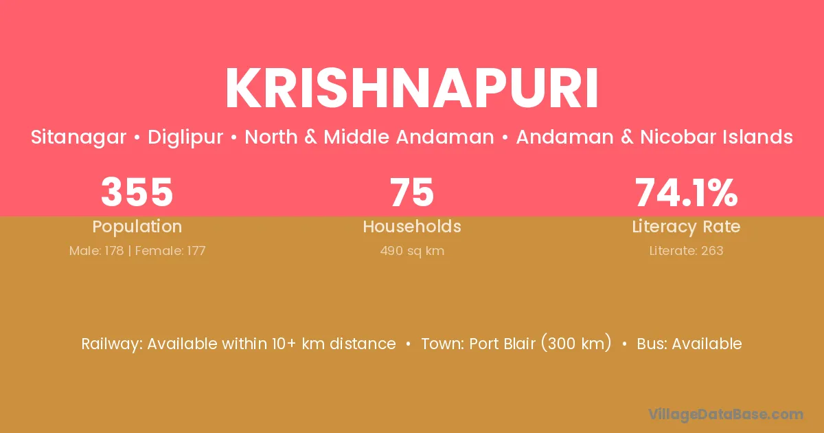 The literacy rate of Krishnapuri village is 47.01%. Male literacy stands at 62.20% and female literacy at 28.83%.