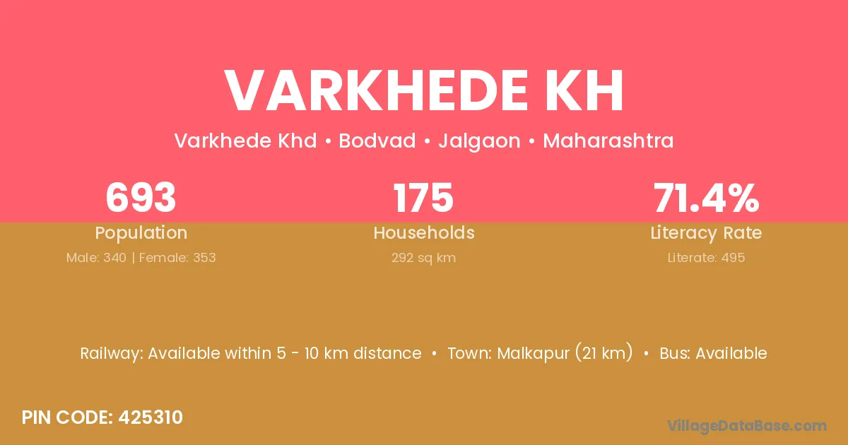 Chalisgaon (26 km) is the nearest town to Varkhede Kh village for major economic activities and is located approximately 26 km away.