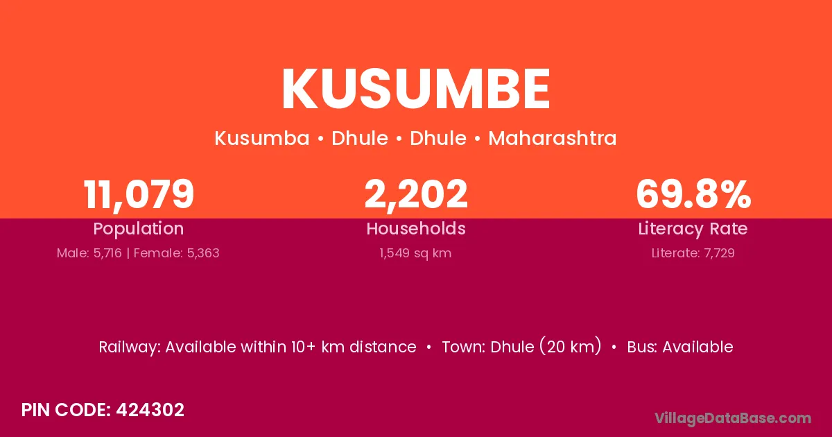 Chopda (21 km) is the nearest town to Kusumbe village for major economic activities and is located approximately 21 km away.
