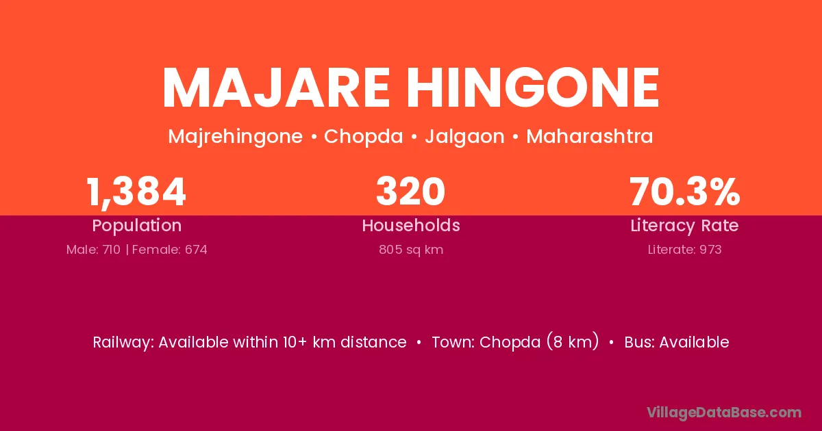 Chopda (8 km) is the nearest town to Majare Hingone village for major economic activities and is located approximately 8 km away.