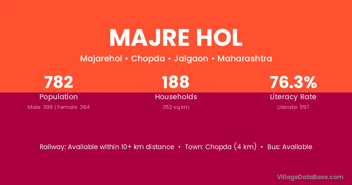 Chopda (4 km) is the nearest town to Majre Hol village for major economic activities and is located approximately 4 km away.