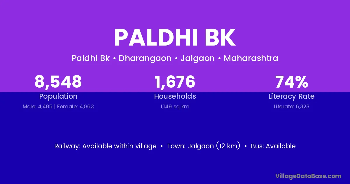 Jalgaon (12 km) is the nearest town to Paldhi Bk village for major economic activities and is located approximately 12 km away.