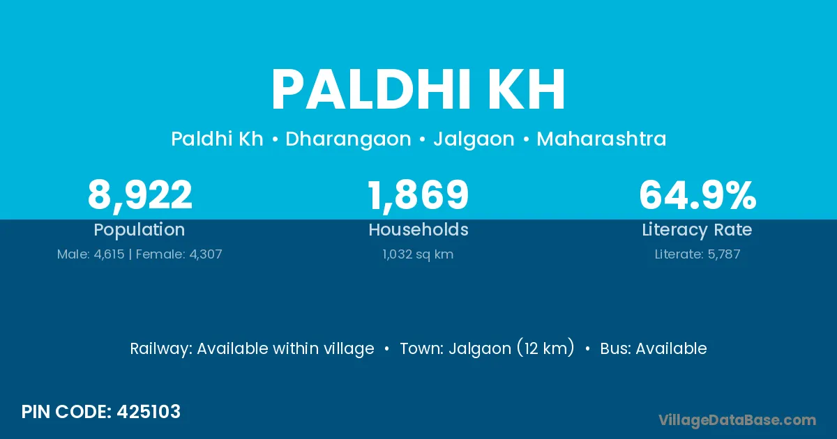Jalgaon (12 km) is the nearest town to Paldhi Kh village for major economic activities and is located approximately 12 km away.