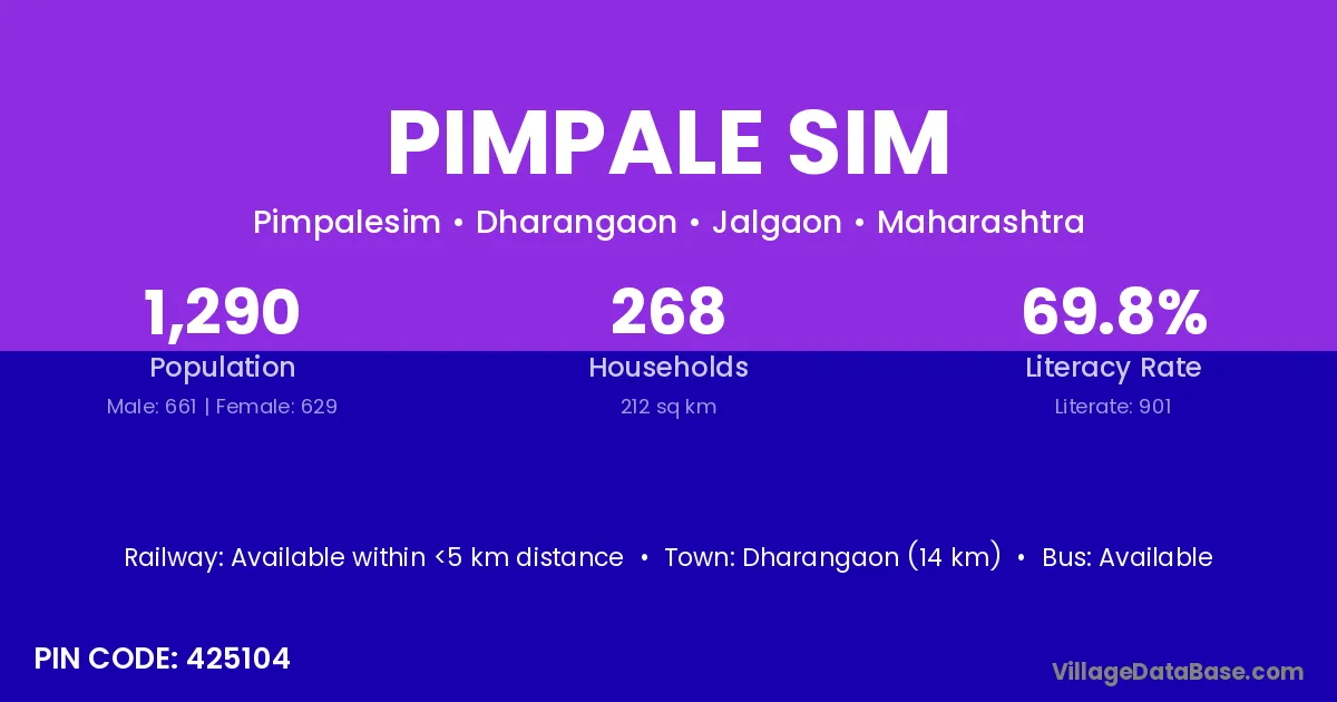 Dharangaon (14 km) is the nearest town to Pimpale Sim village for major economic activities and is located approximately 14 km away.