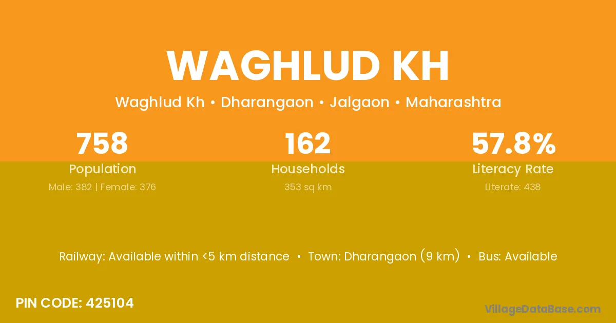 Dharangaon (9 km) is the nearest town to Waghlud Kh village for major economic activities and is located approximately 9 km away.