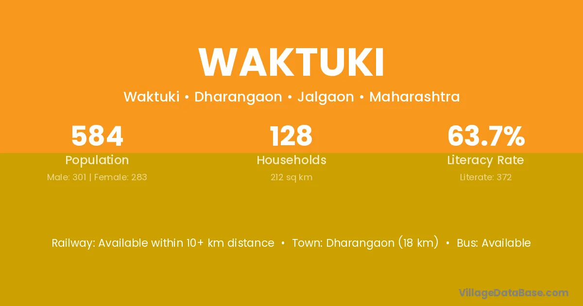 Dharangaon (18 km) is the nearest town to Waktuki village for major economic activities and is located approximately 18 km away.