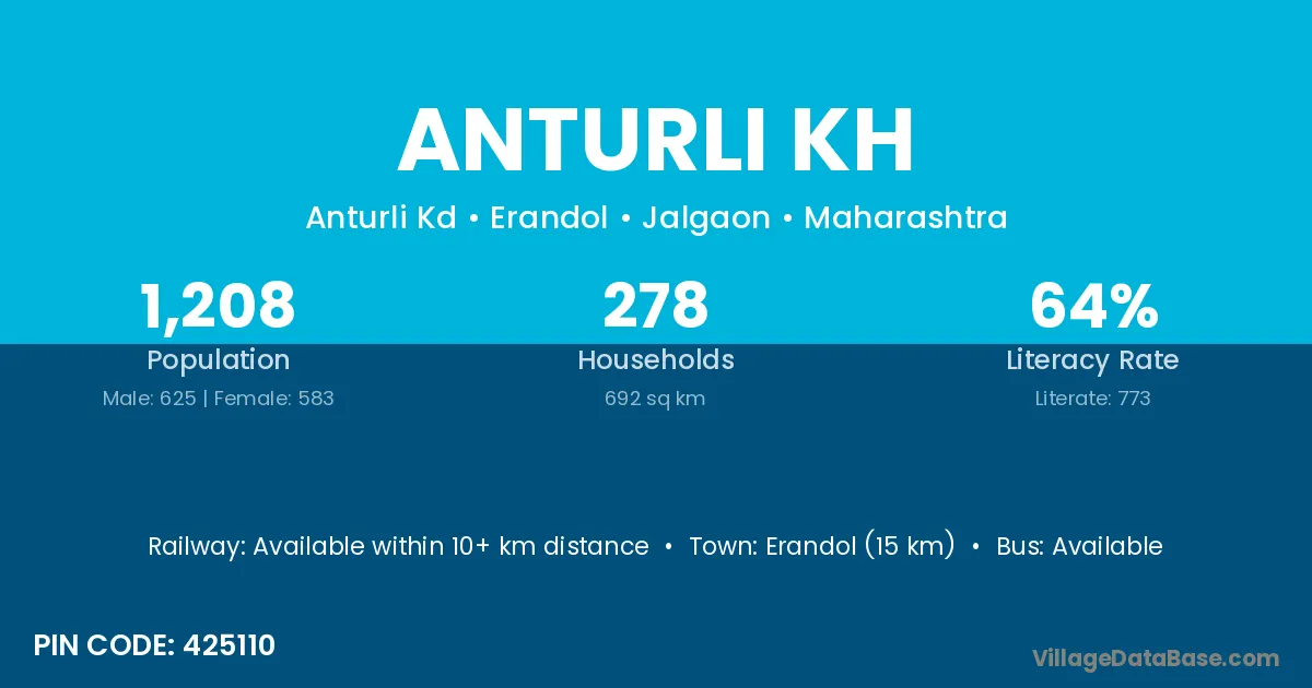 Erandol (15 km) is the nearest town to Anturli Kh village for major economic activities and is located approximately 15 km away.