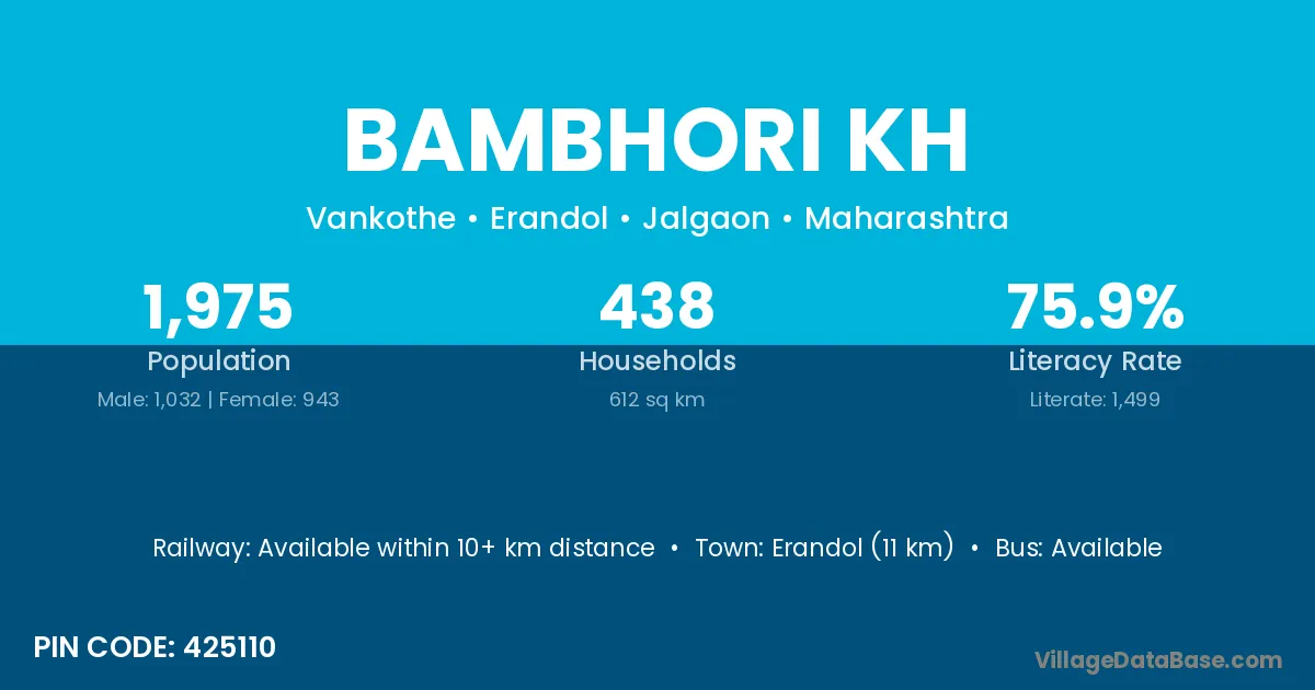 According to Census 2011 information, the village code of Bambhori Kh village is 425110.