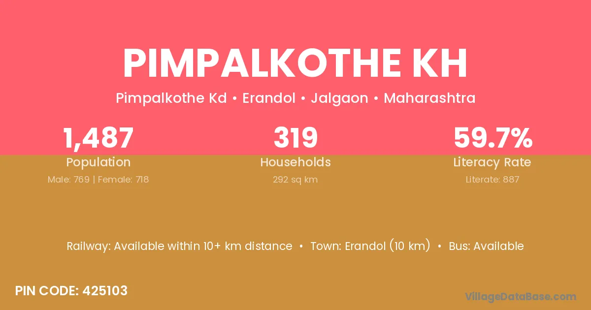 Pimpalkothe Kh village has a total population of 1,487 people, of which 769 are males and 718 are females.