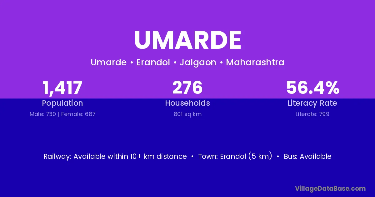 Erandol (5 km) is the nearest town to Umarde village for major economic activities and is located approximately 5 km away.