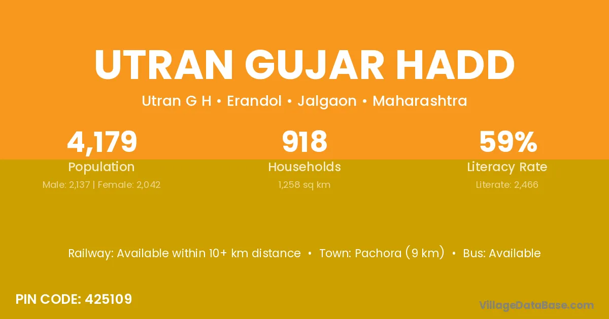 According to Census 2011 information, the village code of Utran Gujar Hadd village is 425109.