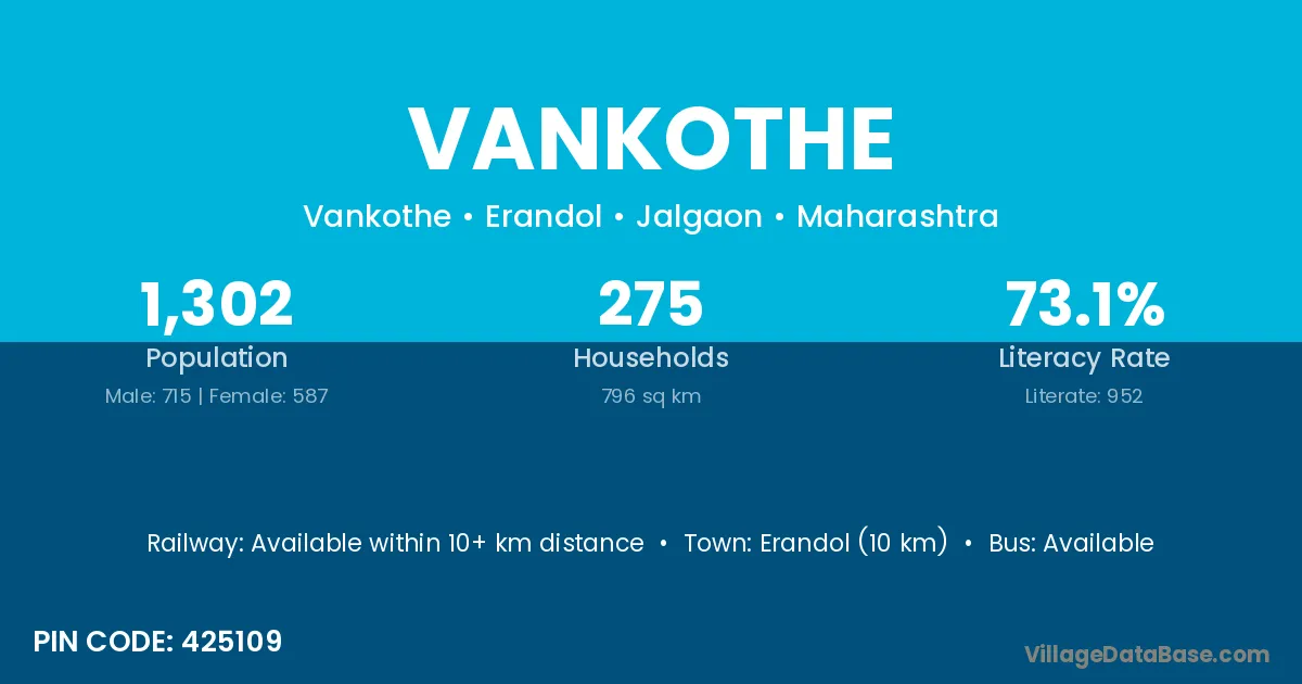 Erandol (10 km) is the nearest town to Vankothe village for major economic activities and is located approximately 10 km away.