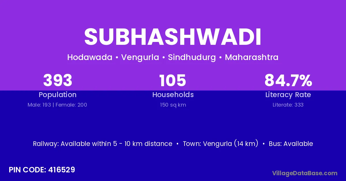 The literacy rate of Subhashwadi village is 43.28%. Male literacy stands at 54.43% and female literacy at 29.91%.