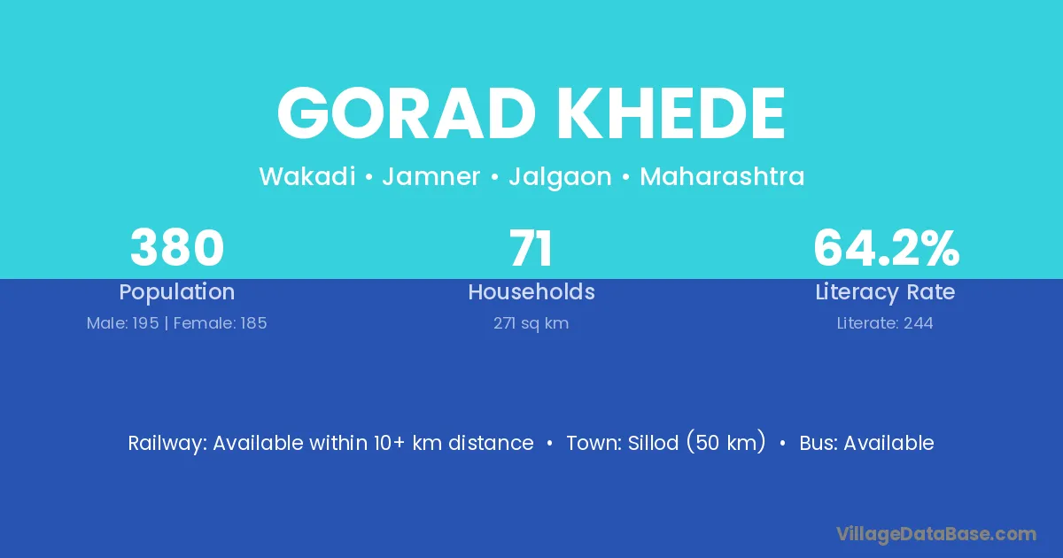 Sillod (50 km) is the nearest town to Gorad Khede village for major economic activities and is located approximately 50 km away.