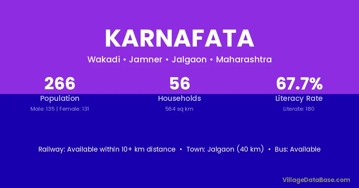 Jalgaon (40 km) is the nearest town to Karnafata village for major economic activities and is located approximately 40 km away.