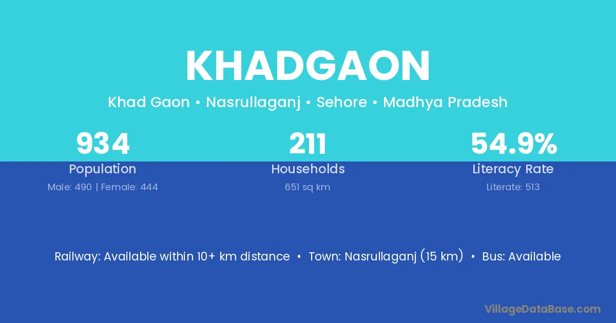 According to Census 2011 information, the village code of Khadgaon village is 424206.