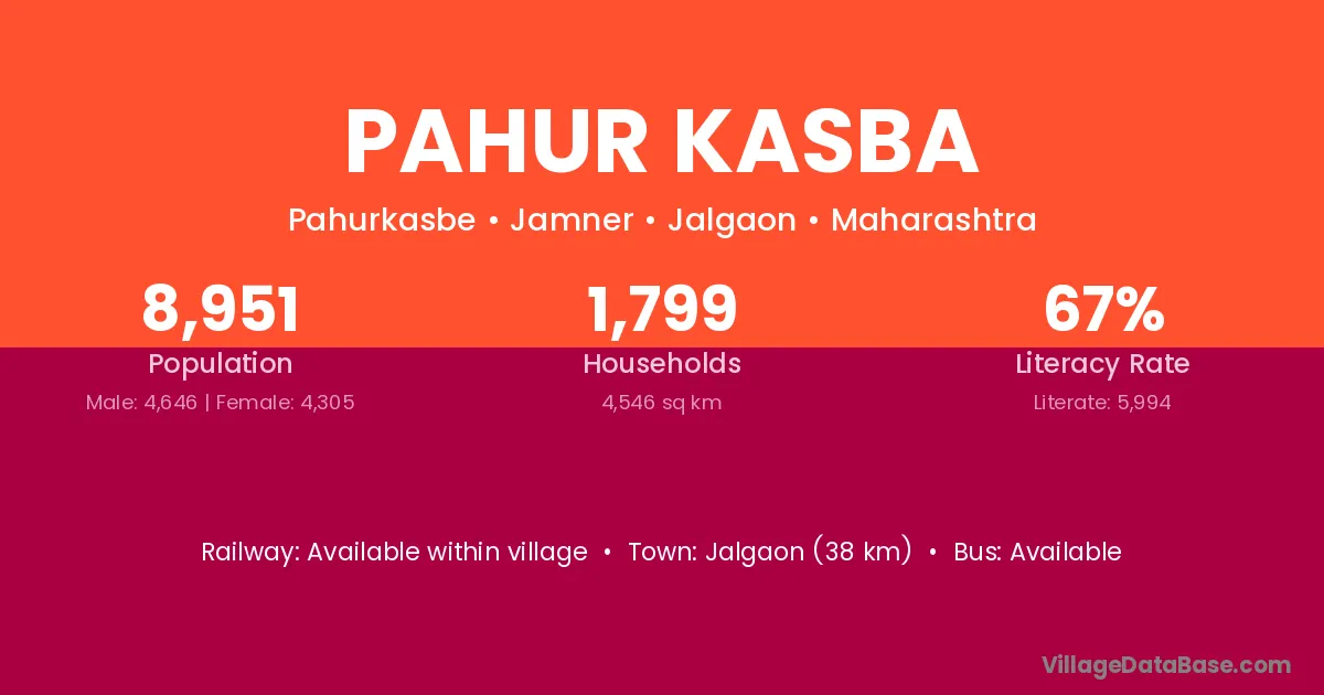 Jalgaon (38 km) is the nearest town to Pahur Kasba village for major economic activities and is located approximately 38 km away.
