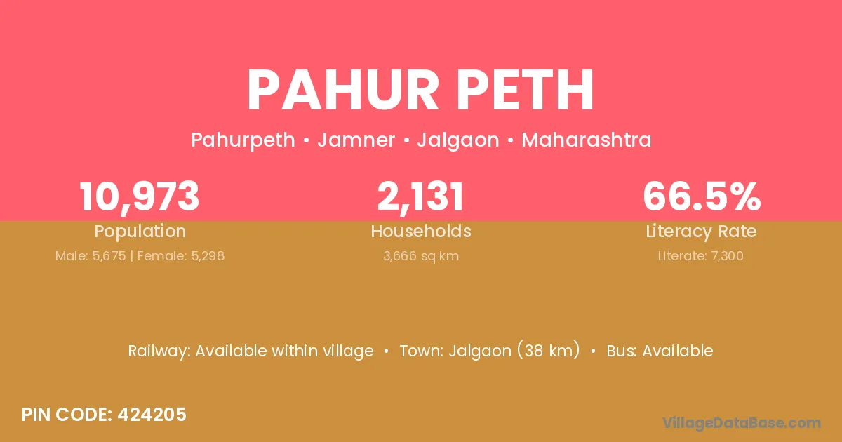 Jalgaon (38 km) is the nearest town to Pahur Peth village for major economic activities and is located approximately 38 km away.