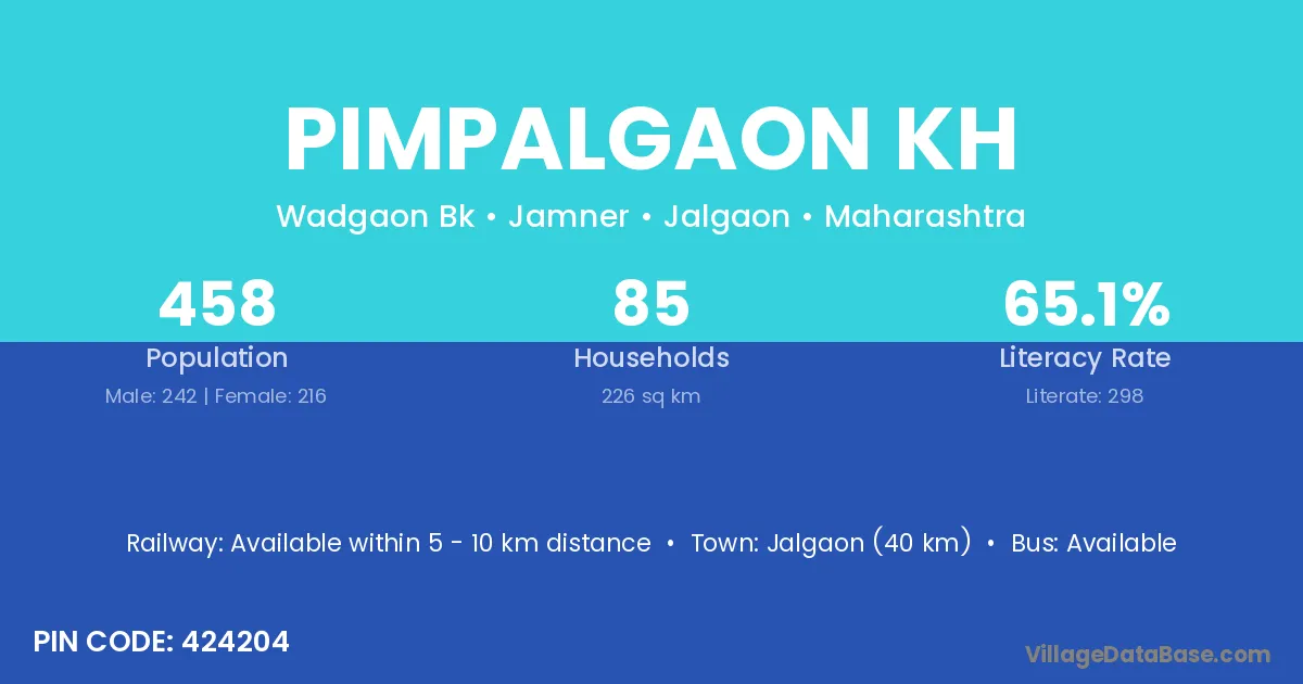 Pimpalgaon Kh village has a total population of 458 people, of which 242 are males and 216 are females.