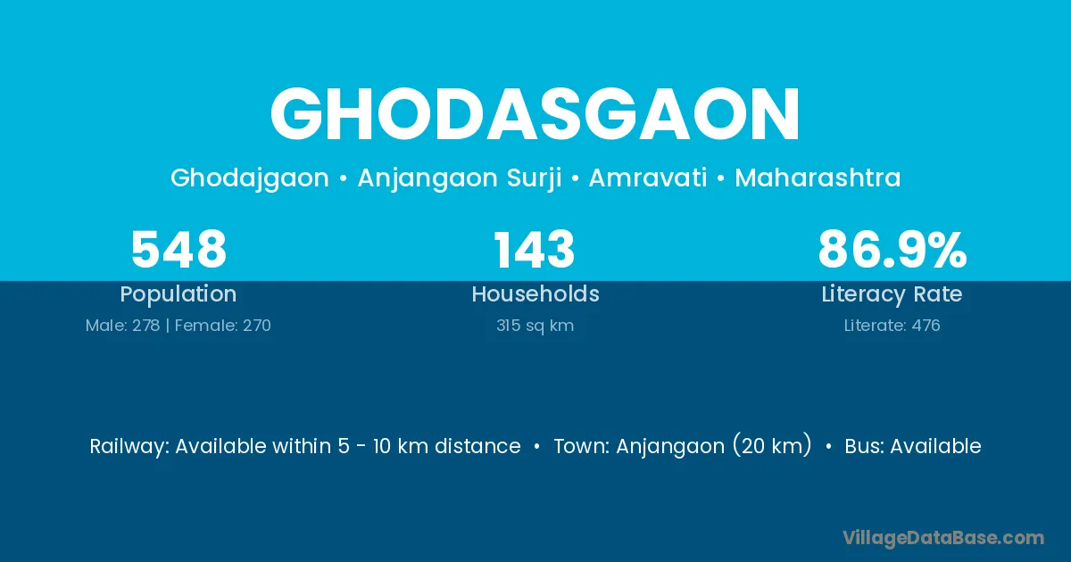 Bhusaval (42 km) is the nearest town to Ghodasgaon village for major economic activities and is located approximately 42 km away.