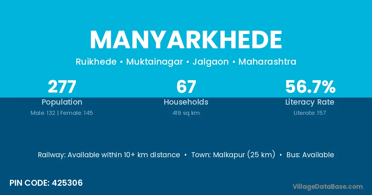 According to Census 2011 information, the village code of Manyarkhede village is 425306.