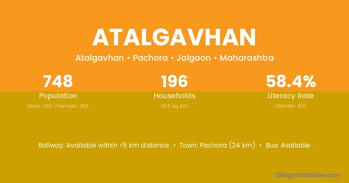 Pachora (24 km) is the nearest town to Atalgavhan village for major economic activities and is located approximately 24 km away.