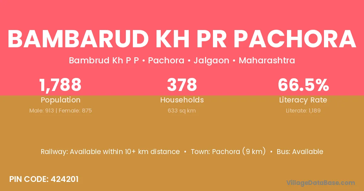 Bambarud Kh Pr Pachora village has a total population of 1,788 people, of which 913 are males and 875 are females.