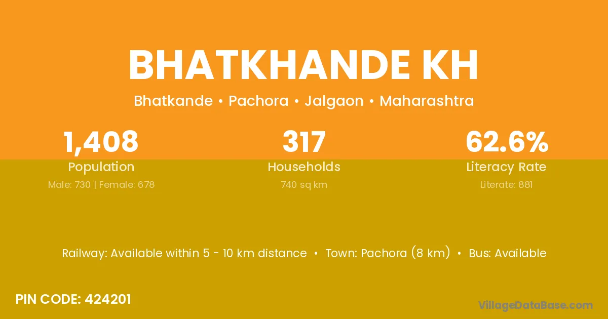 Pachora (8 km) is the nearest town to Bhatkhande Kh village for major economic activities and is located approximately 8 km away.