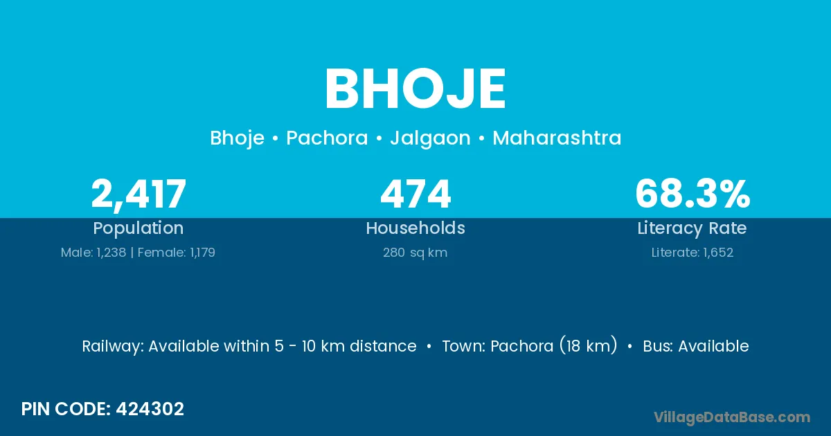 Pachora (18 km) is the nearest town to Bhoje village for major economic activities and is located approximately 18 km away.