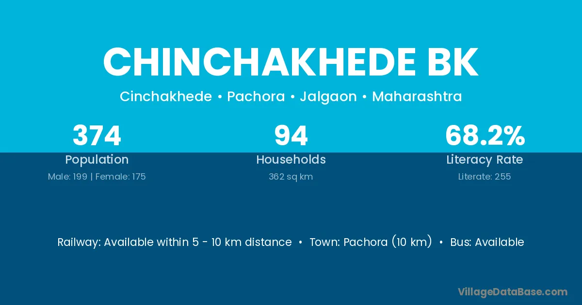 Pachora (10 km) is the nearest town to Chinchakhede Bk village for major economic activities and is located approximately 10 km away.
