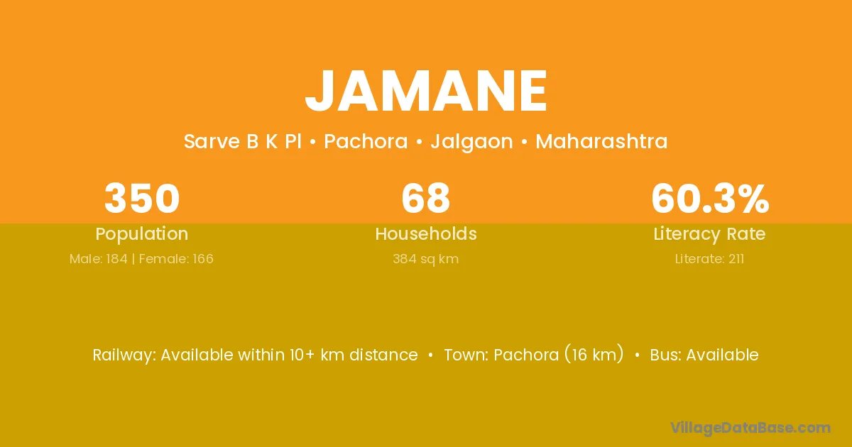 Pachora (16 km) is the nearest town to Jamane village for major economic activities and is located approximately 16 km away.