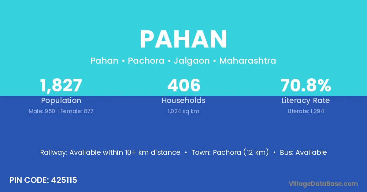 Pachora (12 km) is the nearest town to Pahan village for major economic activities and is located approximately 12 km away.
