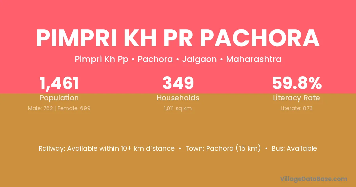 Pimpri Kh Pr Pachora village has a total population of 1,461 people, of which 762 are males and 699 are females.