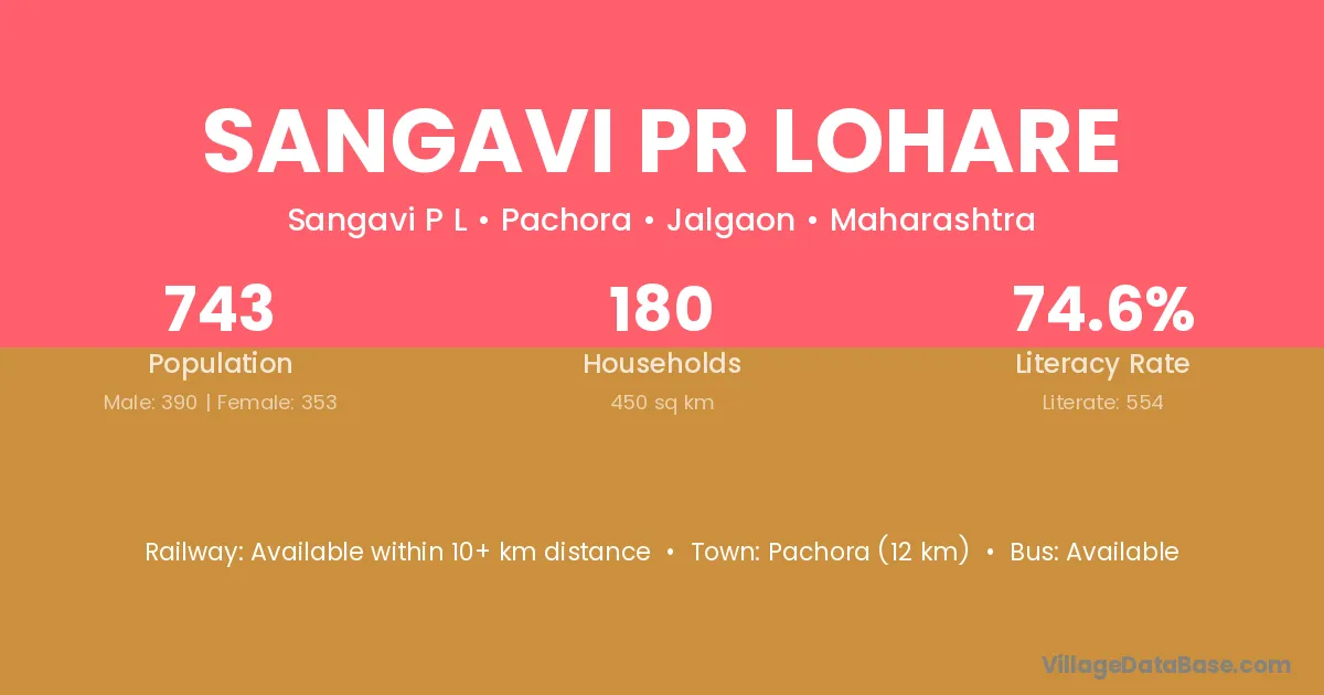 Sangavi Pr Lohare village has a total population of 743 people, of which 390 are males and 353 are females.