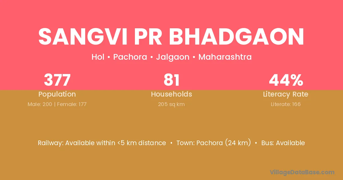Sangvi Pr Bhadgaon village has a total population of 377 people, of which 200 are males and 177 are females.