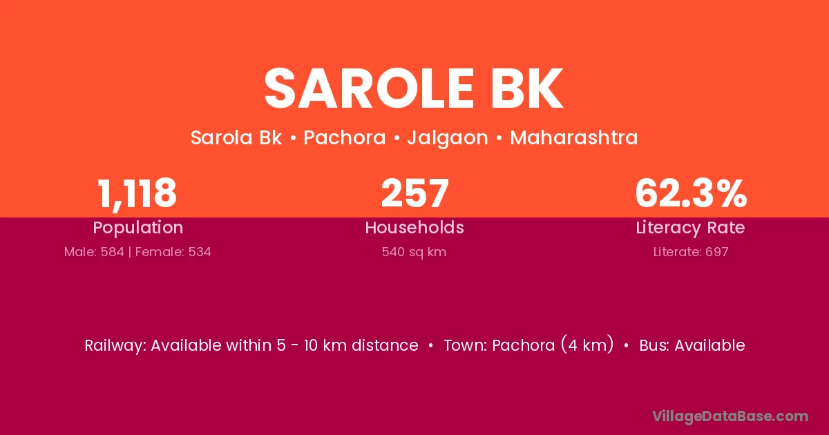Pachora (4 km) is the nearest town to Sarole Bk village for major economic activities and is located approximately 4 km away.