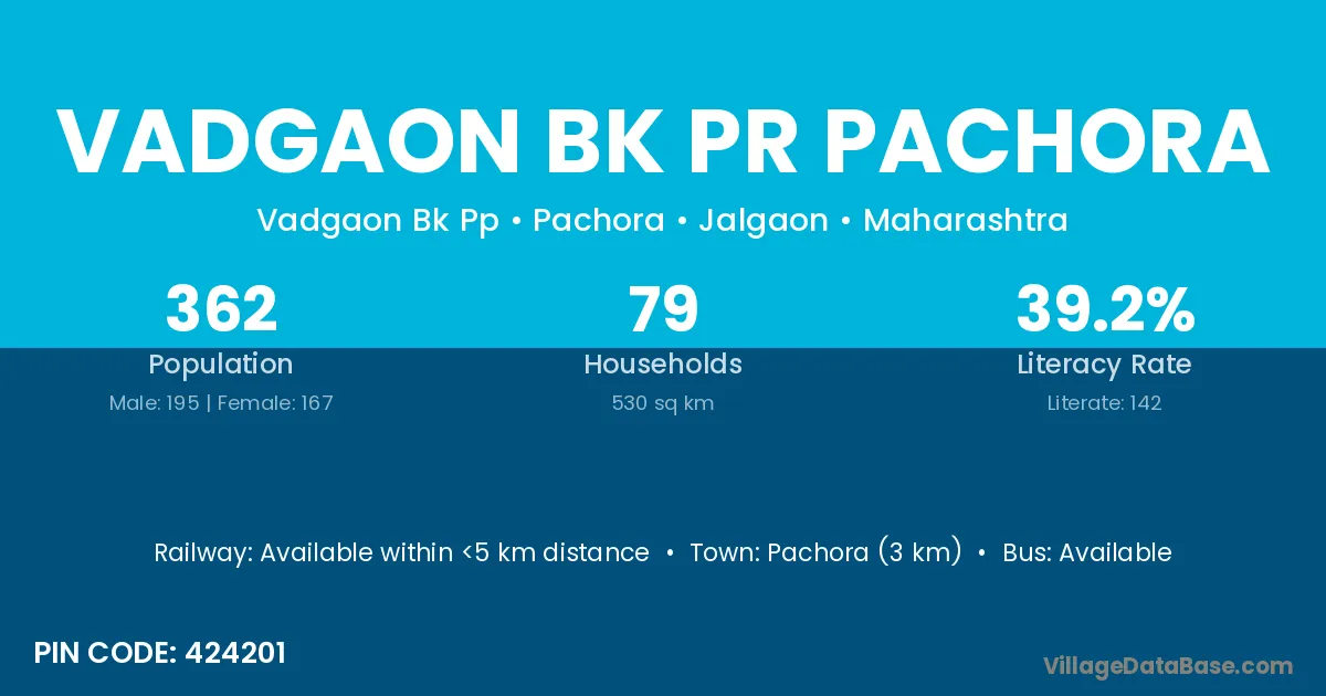 Vadgaon Bk Pr Pachora village has a total population of 362 people, of which 195 are males and 167 are females.