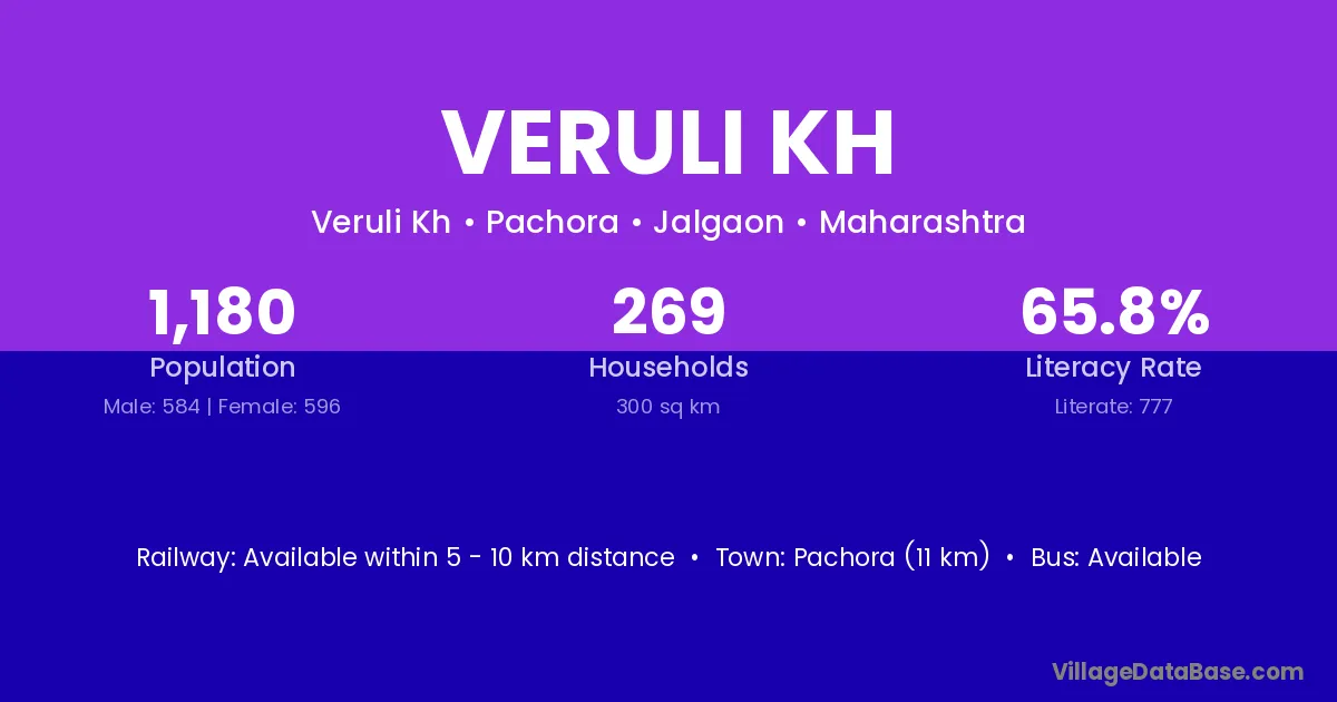Pachora (11 km) is the nearest town to Veruli Kh village for major economic activities and is located approximately 11 km away.