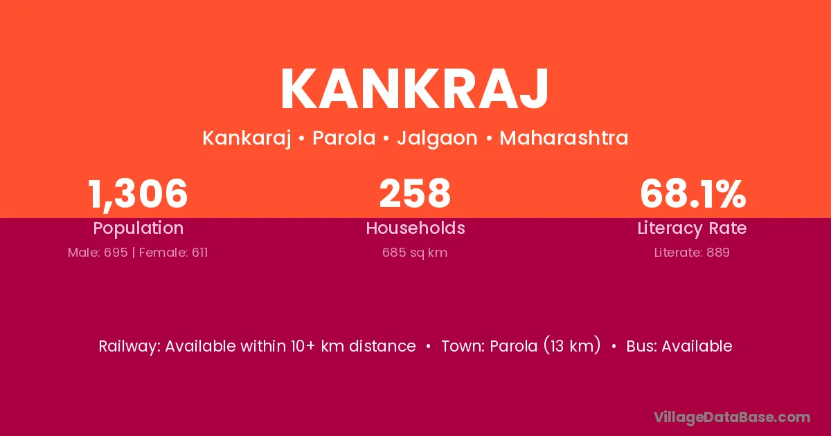 Parola (13 km) is the nearest town to Kankraj village for major economic activities and is located approximately 13 km away.