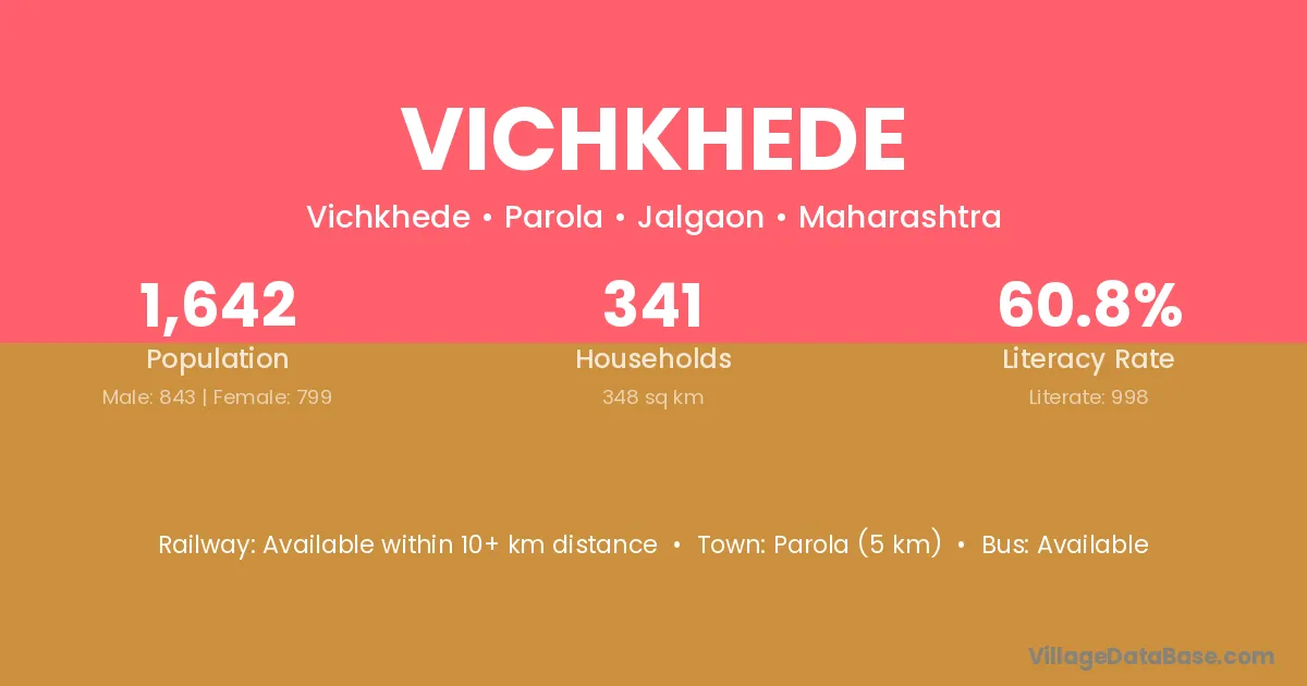 Parola (5 km) is the nearest town to Vichkhede village for major economic activities and is located approximately 5 km away.