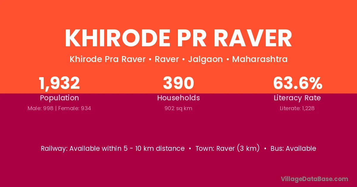 Raver (3 km) is the nearest town to Khirode Pr Raver village for major economic activities and is located approximately 3 km away.