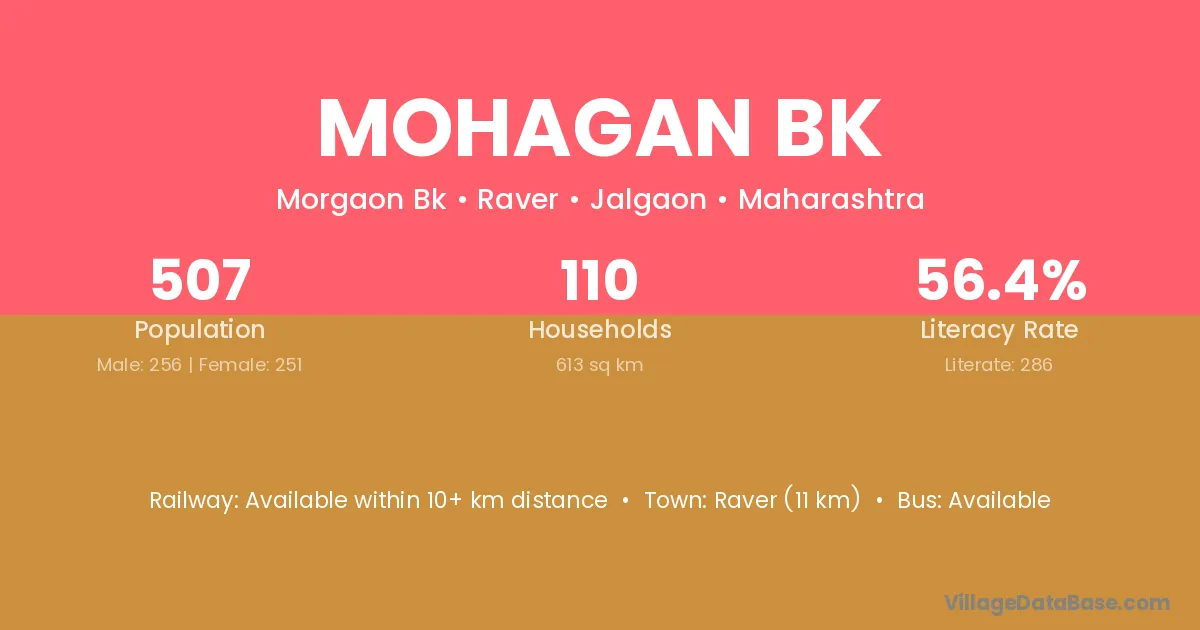 Mohagan Bk village has a total population of 507 people, of which 256 are males and 251 are females.