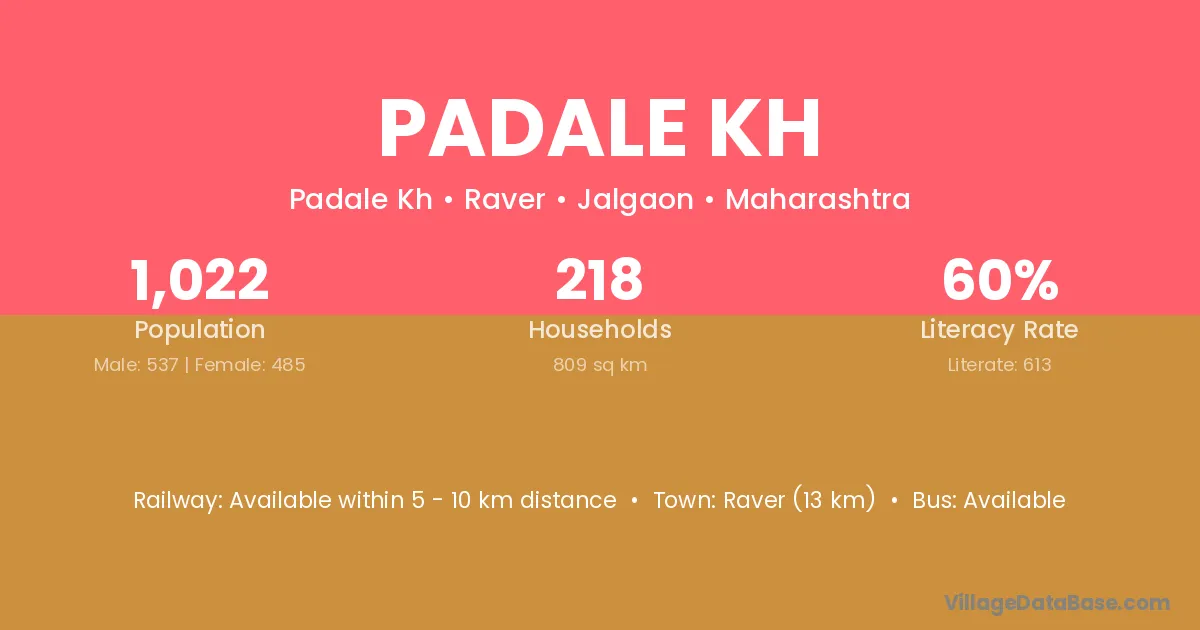 Padale Kh village has a total population of 1,022 people, of which 537 are males and 485 are females.