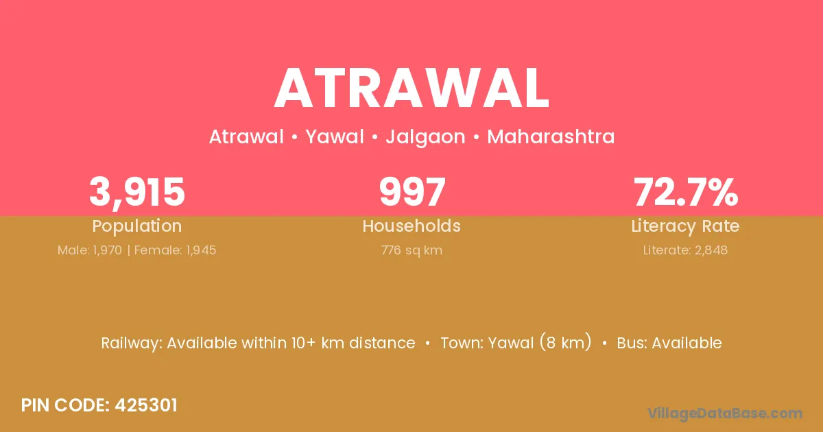 Yawal (8 km) is the nearest town to Atrawal village for major economic activities and is located approximately 8 km away.
