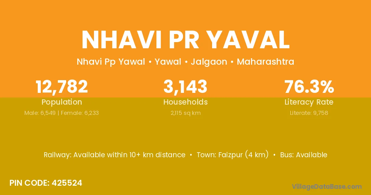 Faizpur (4 km) is the nearest town to Nhavi Pr Yaval village for major economic activities and is located approximately 4 km away.