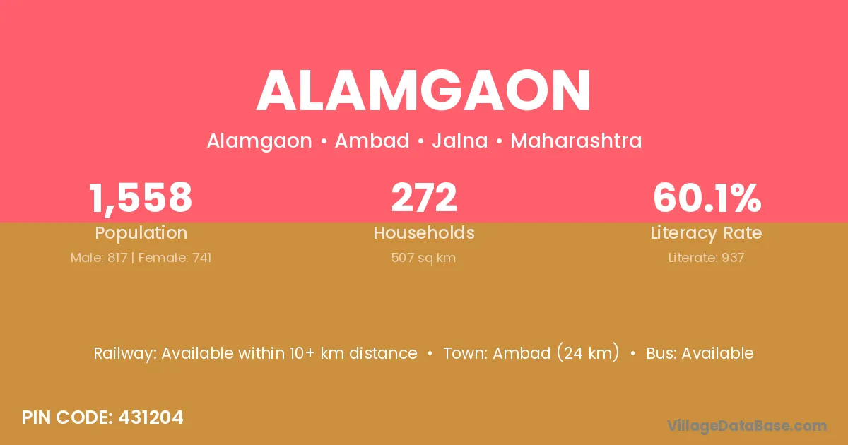 According to Census 2011 information, the village code of Alamgaon village is 431204.