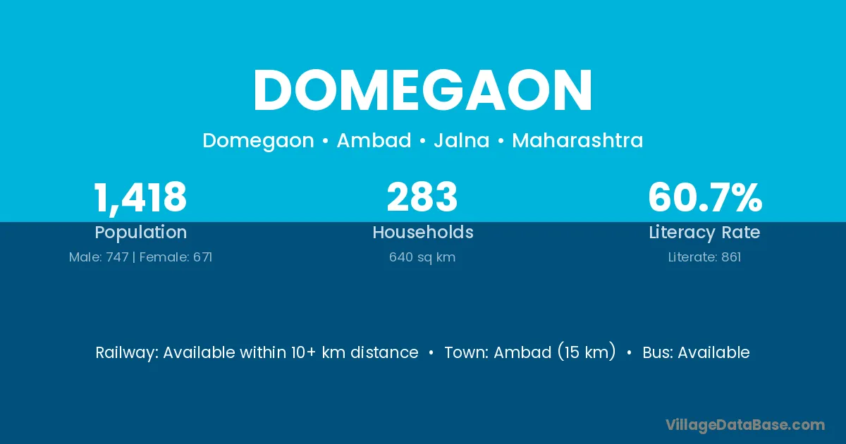 Domegaon village has a total population of 1,418 people, of which 747 are males and 671 are females.