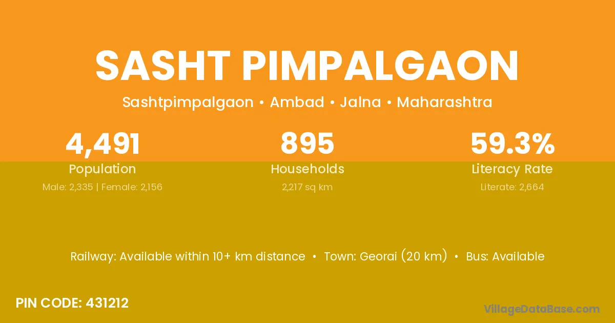 According to Census 2011 information, the village code of Sasht Pimpalgaon village is 431212.