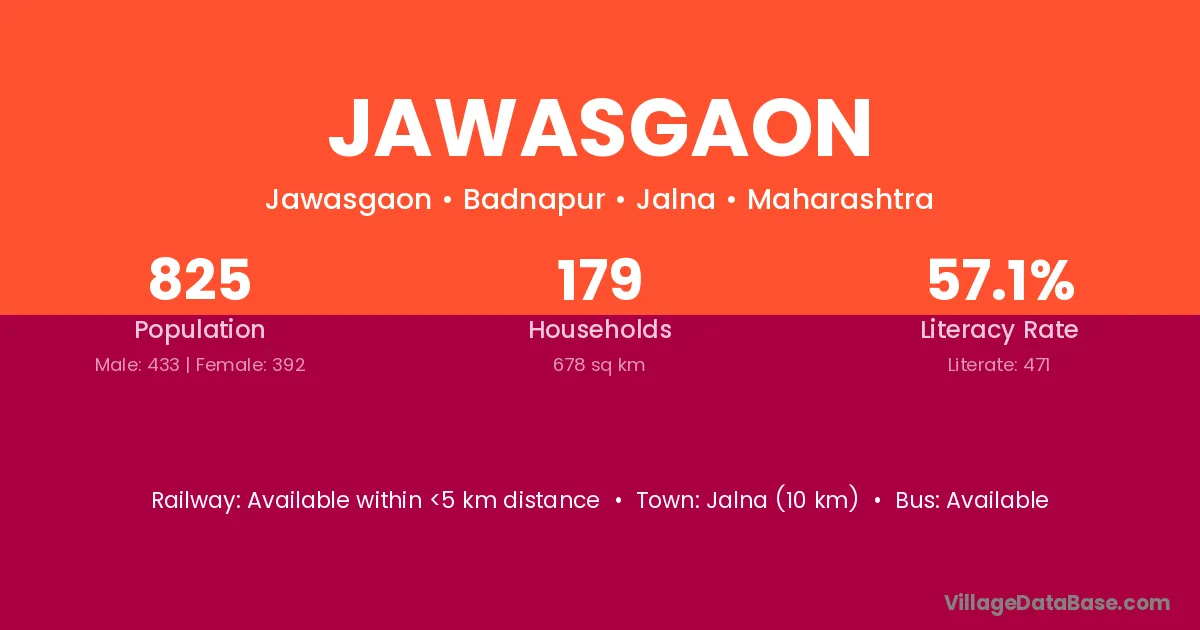 Jalna (10 km) is the nearest town to Jawasgaon village for major economic activities and is located approximately 10 km away.
