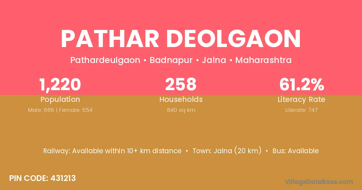 Pathar Deolgaon village has a total population of 1,220 people, of which 666 are males and 554 are females.